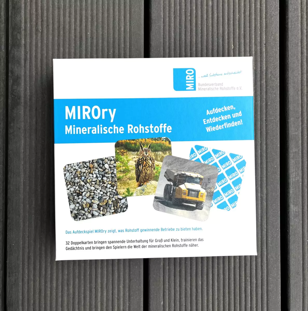 Das MIROry begeisterte über viele Jahre Kinder und Erwachsene gleichermaßen. Beim Spielen werden nicht nur Gedächtnis und Konzentration geschult – ganz nebenbei vermittelt das Spiel auch interessantes Wissen rund um die Gewinnung und Aufbereitung mineralischer Rohstoffe sowie zu den ökologischen, ökonomischen und sozialen Aspekten der Rohstoffindustrie.